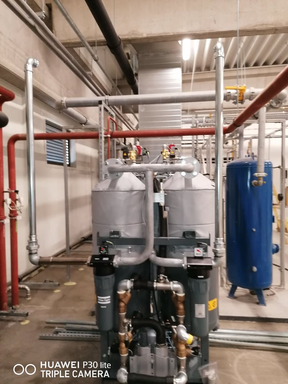 Atlas Copco Hungary Kft. megbízásából a Thyssenkrupp Kft. Jászfényszarui telephelyén 2 db 26kW GA kompresszor, 1db BD300+ adszorpciós szárító telepítése.